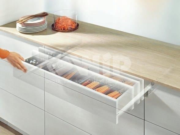 • kryta prowadnica TANDEM – pełny wysuw ze zintegrowanym BLUMOTION, który zapewnia ciche i delikatne zamykanie