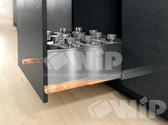 LEGRABOX to linia szuflad Blum o prostym, gładkimi szczególnie wysokim komforcie ruchu. System ten można zastosować nie tylko w pomieszczeniach mieszkalnych. Imponująco smukłe boki szuflady o grubości 12,8mm harmonijnie łączą się z każdym meblem. Dzięki prowadnicy BLUMOTION S, jej niewielkiej siły do otwierania i zsynchronizowanego delikatnego ruchu, LEGRABOX daje możliwość realizacji trzech technologii ruchu z wykorzystaniem tylko jednej prowadnicy.