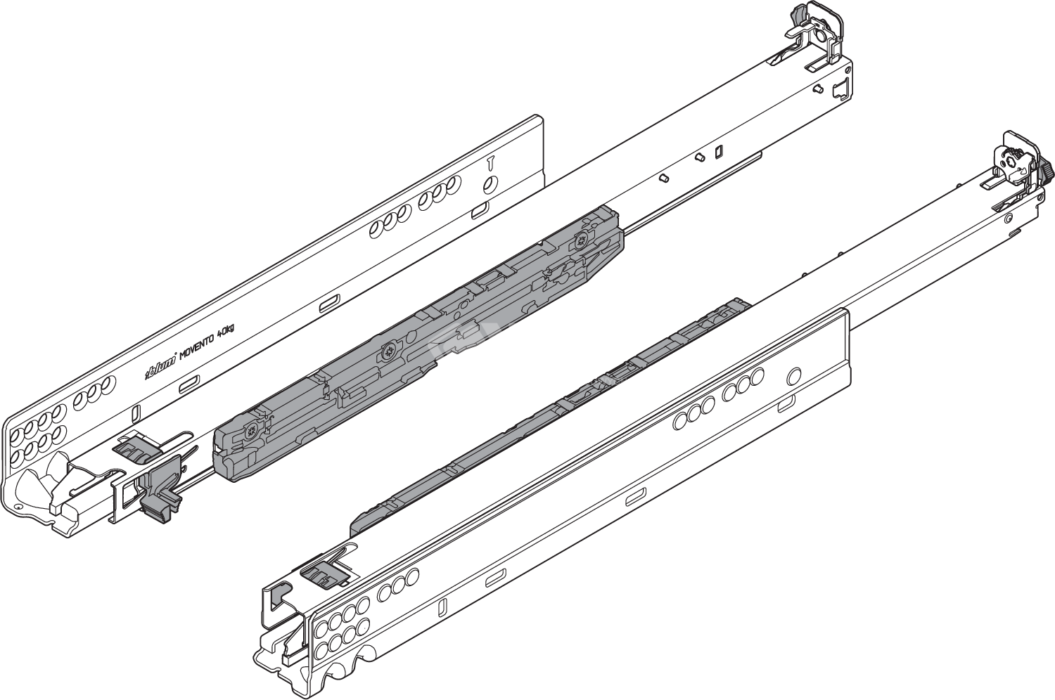 MOVENTO z BLUMOTION to kryty system prowadnic z pełnym wysuwem. Zintegrowany, przestawny Blumotion S dla delikatnego i cichego zamykania, w opcji z SERVO-DRIVE oraz TIP-ON BLUMOTION. Regulacja boczna, wysokości i nachylenia oraz opcjonalna regulacja głębokości bez użycia narzędzi.