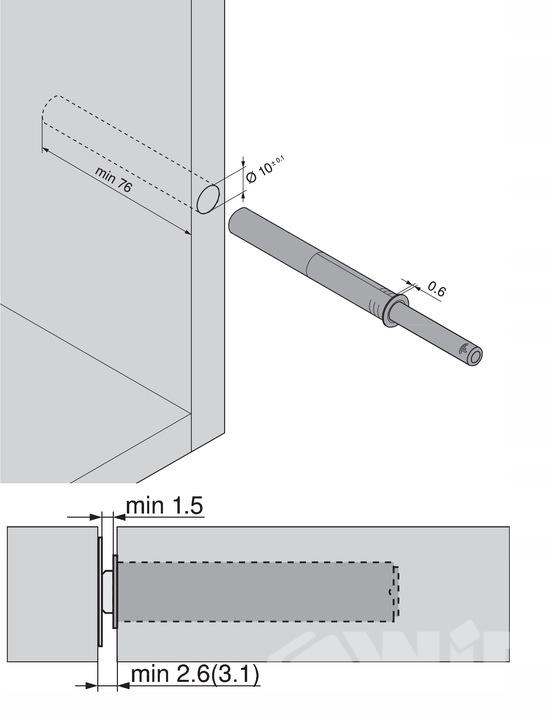 Montaż TIP-ON odbywa się na dwa sposoby: bezpośrednio we froncie mebla lub poprzez adapter.
