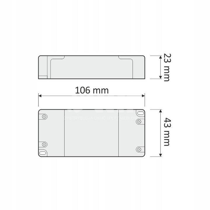 • Wymiary (mm): dł. 106 mm/ szer.43 mm/ wys. 23 mm