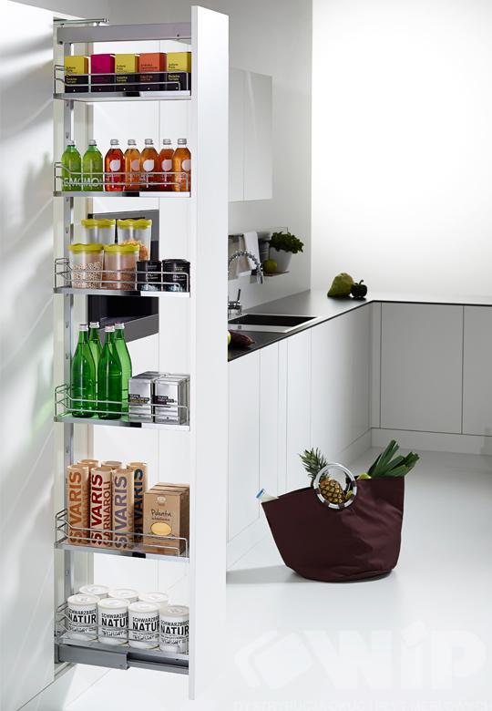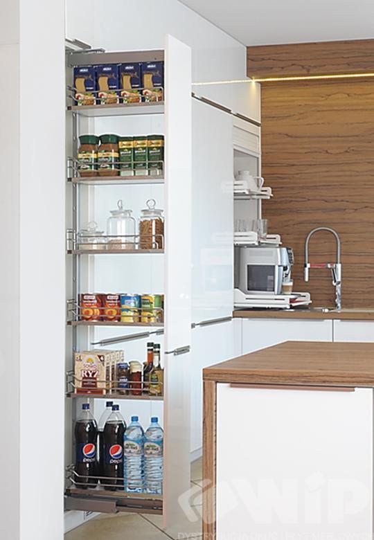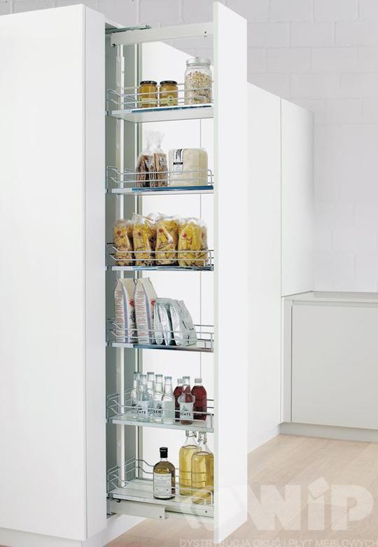 Cargo wysokie Dispensa do montażu w słupku meblowym do szerokości 600 mm. Po wysunięciu systemu z szafki mamy doskonały dostęp do przestrzeni magazynowej zarówno z jednej jaki i z drugiej strony. Cargo Dispensa 600 bez problemu pomieści duże ilości zapasów i pozwoli wygodnie je poukładać – jak w praktycznej, domowej spiżarni. Dzięki temu funkcjonalnemu mechanizmowi Dispensa zyskujesz praktyczną przestrzeń na przechowywanie dużej ilości zapasów, a każda umieszczona rzecz jest doskonale widoczna i łatwa do zlokalizowania.