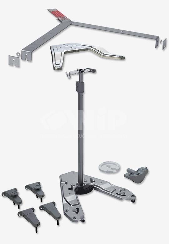 Aby system mógł być zamontowany w szafce, wymagana jest jej specjalna konstrukcja. System przeznaczony jest do szafki o module 900 mm x 900 mm (3/4). Szafka musi mieć obniżone dno i nie mieć górnego wieńca. Szerokość frontów nie jest stała i zależy od głębokości krótszych boków. Możemy zastosować jedną z czterech narzuconych głębokości: 545 mm, 550 mm, 555 mm i 560 mm po zewnętrznej.