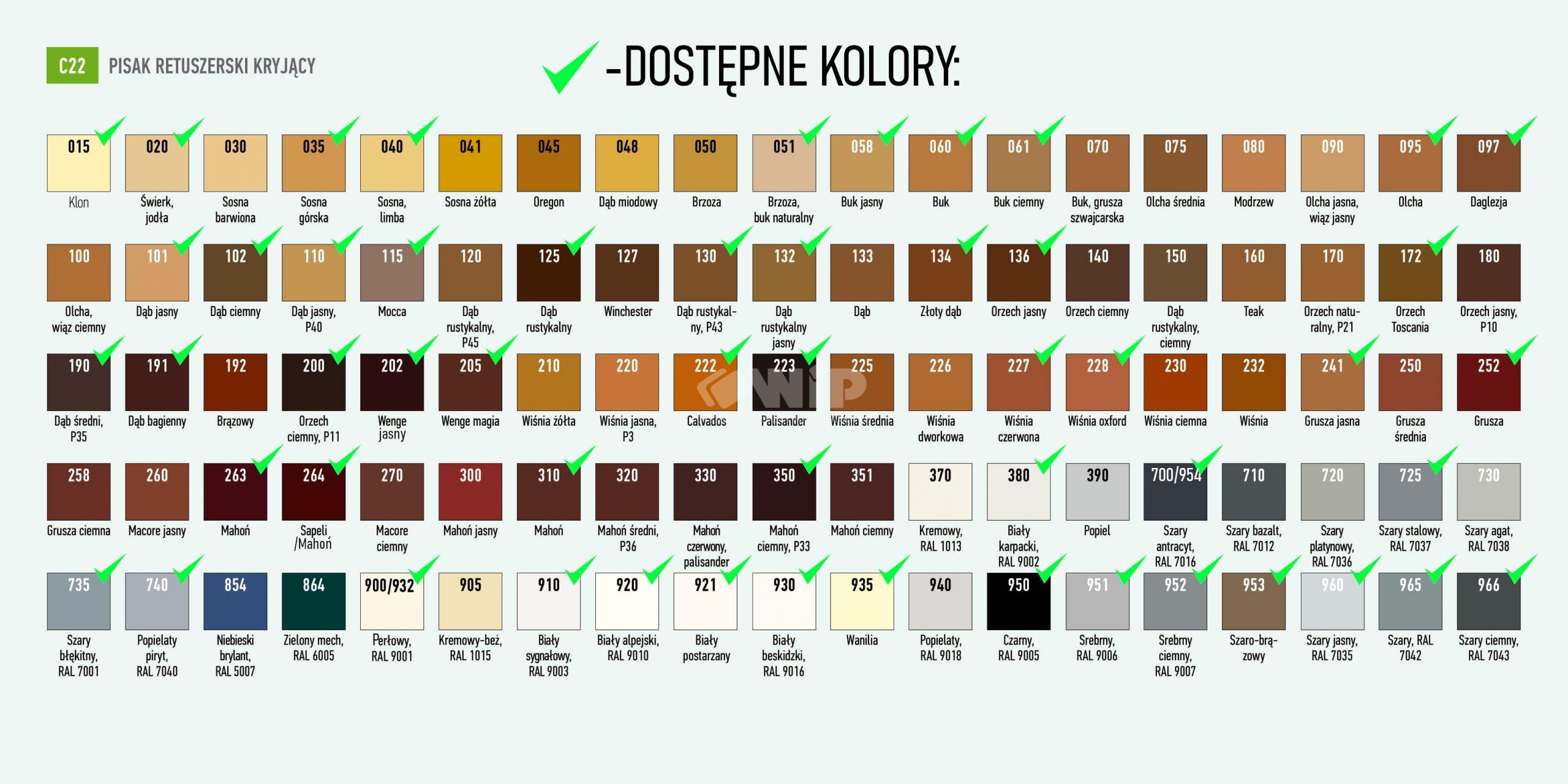 - 1szt.Pisak retuszerski do naprawy mebli C22 Ottimo nr 380 Biały karpacki RAL9002