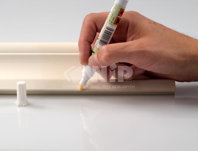 Pisak z farbą kryjącą, szybkoschnący, wodoodporny, nieścieralny, odporny na promienie UV. Idealny do barwienia krawędzi płyt laminowanych (wypełnia drobne wyszczerbienia). Stosowany do retuszu uszkodzeń na powierzchniach z drewna, laminatów, tworzyw sztucznych i aluminium. Do użytku wewnątrz i na zewnątrz. Końcówki wymienne C61 można zamawiać osobno. Produkt pozostawia półmatowy efekt.