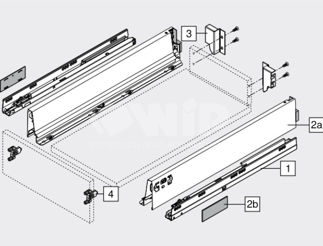 Kompletny zestaw niskiej szuflady z tip-on blumotion od Blum.